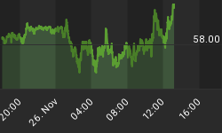 The chart below shows momentum of the oscillators used to calculate the SI's for the previous chart. The chart covers the past 3 months. For the past 2 months there has been a rhythmic pattern of about 1.5 weeks up followed by 1.5 weeks down. If the pattern continues, we should be near the top of the current move.
